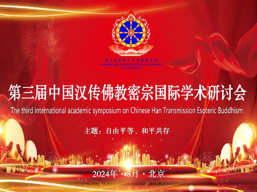 中國漢傳佛教及其文化是具有高度的信仰價值、文化價值與學術價值,是佛教中國化的實踐結晶和寶貴成果。在 2019 年、2023 年成功舉辦了第一屆、第二屆中國漢傳佛教密宗國際學術研討會得到了社會各界的高度認可。為進一步挖掘漢傳佛教優文化深刻內涵,彰顯漢傳佛教文化獨特價值,定於 2024 年 8 月在北京舉辦“第三屆中國漢傳佛教密宗國際學術研討會”。本屆研討會以“自由平等、和平共存”為主題,通過佛教學術交流和文化活動,進而營造弘揚中華優秀傳統文化的氛圍。屆時將擬邀請國家民委、國家宗教局、國家發改委、中宣部等領導專家和澳洲佛教界代表相聚北京,總結佛教中國化的經驗與智慧,梳理漢傳佛教文化的內涵與意義,探討中國漢傳佛教文化的國際影響與交流合作,共同為實現中華民族偉大復興的中國夢而努力奮鬥。