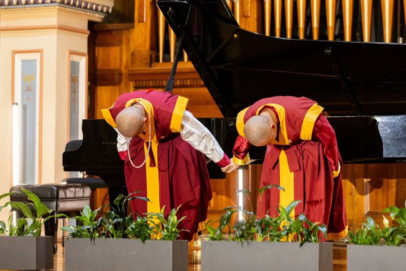 弟子想到了 薄伽梵 師尊世界性大弘卅五週年紀念的日子,亦想到小活佛們的首場音樂會應是對 薄伽梵 師尊和聖教的供養,故而在挑選日期時,盡量挑選了接近4月16日的日期,只是四月的幾乎每天,鎮禮堂都已被預約了,4月5日是弟子唯一能預約的日子⋯⋯。4月5日,剛在不到一個星期之前,是大聖寶 金剛永誠長老一世虹化廿五週年紀念,在不到兩星期後,是 薄伽梵 師尊展開世界性大弘的卅五週年紀念。於弟子而言,弟子感到這是在提醒著弟子,那無止境無盡頭的、貫穿大三世的永恆聖密菩提之道。