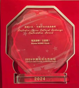 2O24年中澳经济、文化、政治论坛中,中國驻墨尔本总领館房新文总领事阁下颁发: