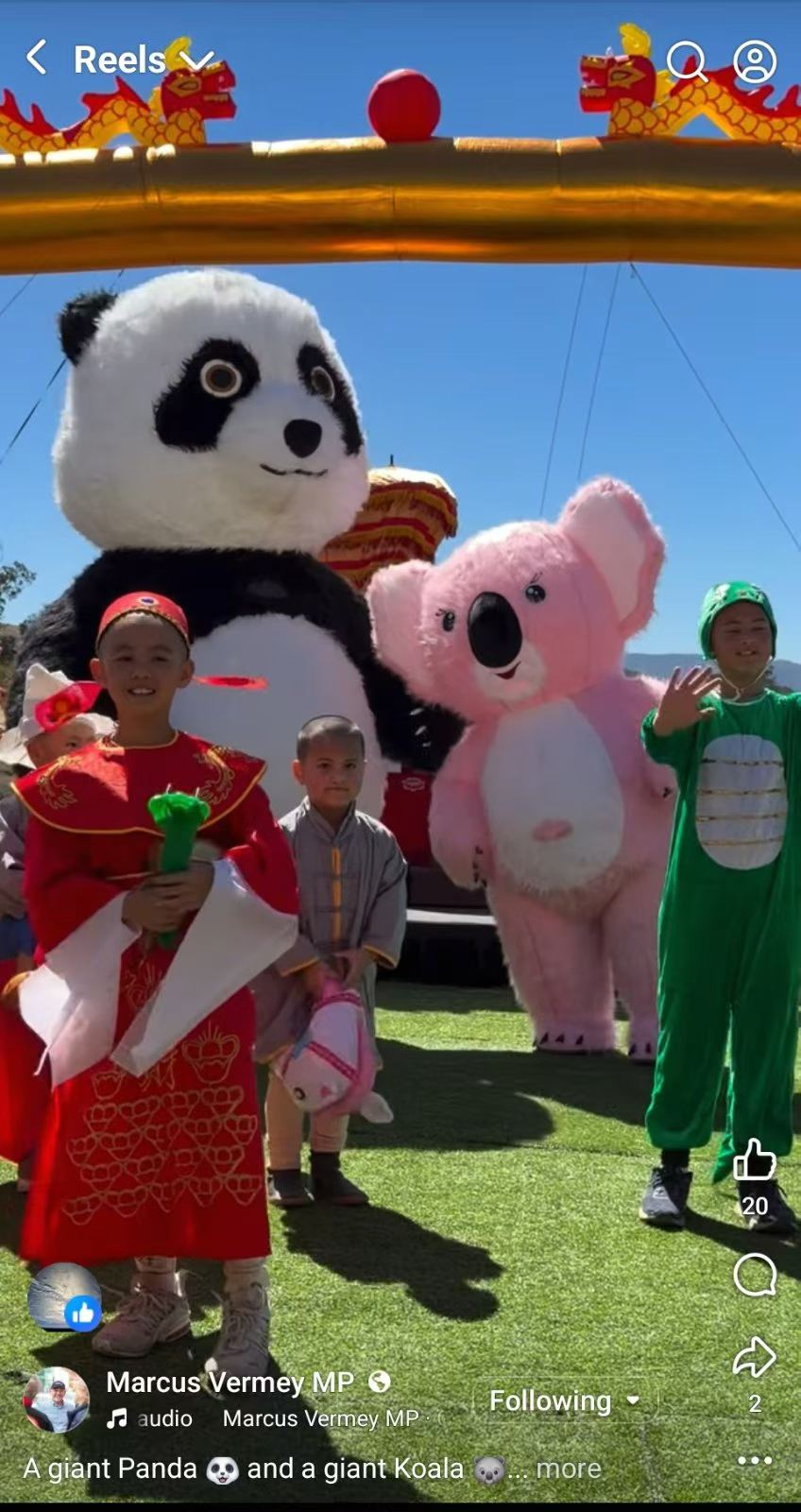 州长代表Marcus Verney MP 脸书: 一只大熊猫和一只大考拉象征着中澳两国友谊、社群与文化纽带的展现 2026 年 02 月 27 日 0条评论 175次阅读 4人按赞 本网 州长代表Marcus Verney MP 脸书: 一只大熊猫🐼和一只大考拉🐨 象征着中澳两国友谊、社群与文化纽带的展现🇨🇳🇦🇺 < 上一篇 下一篇 > 发布留言 取消回复电子邮件地址不会被公开。必填项已用 * 标注 * * * Δ