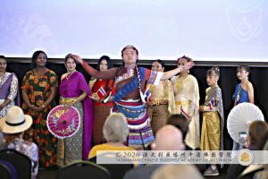 澳大利亞塔州中國佛教學院的兩位女性代表──金剛永誠三世與金剛永誠六世,亦參與了展現各民族傳統服飾的〝時裝秀〞。由大會司儀在一旁闡述服飾的文化背境和故事,在金剛聖源轉世者《我愛你中國》的悠揚琴聲之中,金剛永誠六世身著動禪陀羅尼法衣,踏著筋斗與前翻輕捷登台,贏得台下陣陣驚嘆與掌聲;金剛永誠三世則身著梵舞服,在綠渡母心咒的梵咒梵樂聲中,以梵舞步伐展現在眾人面前。