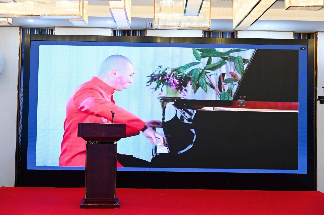 在研讨会的接近尾声的时候,远在澳洲的金刚圣源长老为本次研讨会献上了钢琴独奏《我的祖国》。当熟悉而深情的旋律透过云端缓缓流淌而出,会场内霎时间一片静寂,随即,出席研讨会的与会者们不约而同地合着琴声轻声吟唱。 歌声与琴声交织,不再是简单的合唱,而化作了对共同文化根脉的深切缅怀与致敬。这一刻,地理的隔阂被音乐消弭,研讨的理论沉淀为真切的情感,所有人在这庄严而温暖的氛围中,感受到了一种源于文化与家国的强大凝聚力。琴声落幕,余韵未绝,会场中短暂的寂静后爆发出持久而热烈的掌声,这掌声既是献给长老精湛而深情的演奏,也是献给每一个人心中那条永不干涸的“大河”与那片永远眷恋的“故乡”。